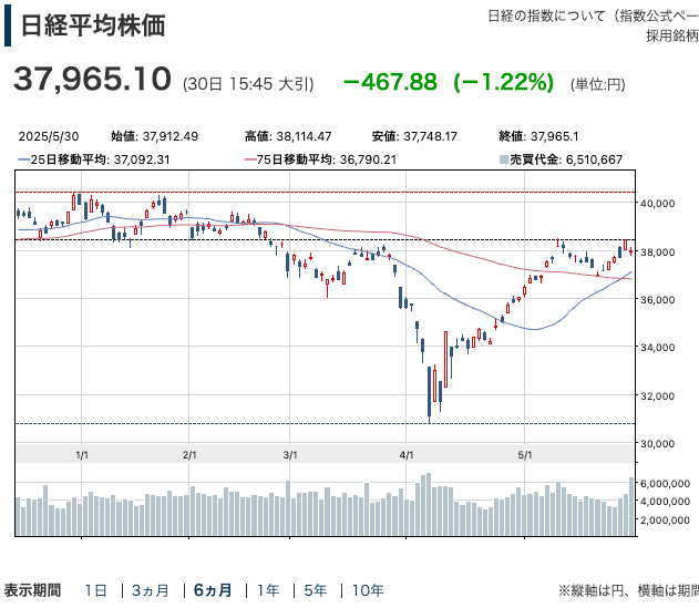 日経平均6ヶ月チャート202505
